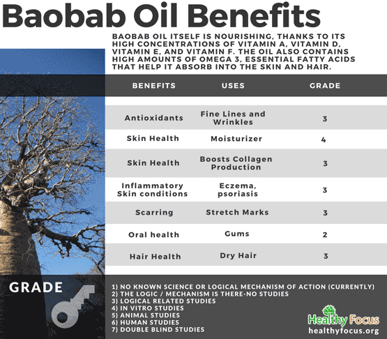 Baobab oil has been given a rating of two on the comedogenic scale. This means that it is unlikely to cause an allergic reaction in people with sensitive skin, however, there are still many people who might react poorly to using the oil.