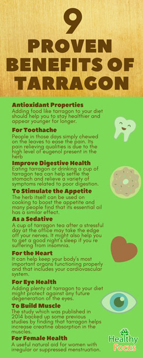 Tarragon has traditionally been consumed as a general digestive tonic. It can increase the liver’s production of bile which is vital for efficient digestion. Eating tarragon or drinking a cup of tarragon tea can help settle the stomach and relieve a variety of symptoms related to poor digestion.