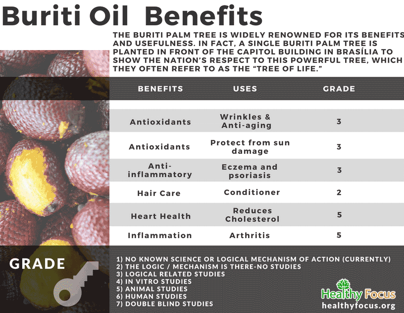 Its antioxidant value based on the ORAC scale was very high with researchers concluding that buriti oil had a lot of potential. According to the researchers :